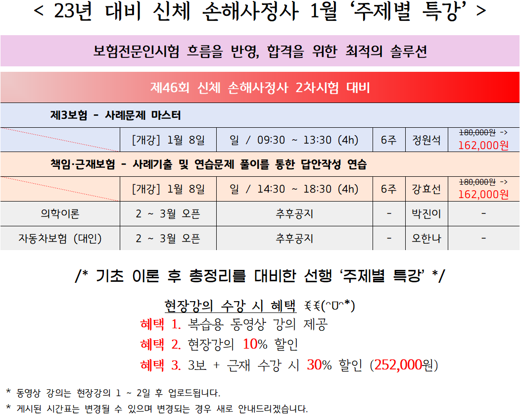 [손사] 23년 1월 현장강의 시간표