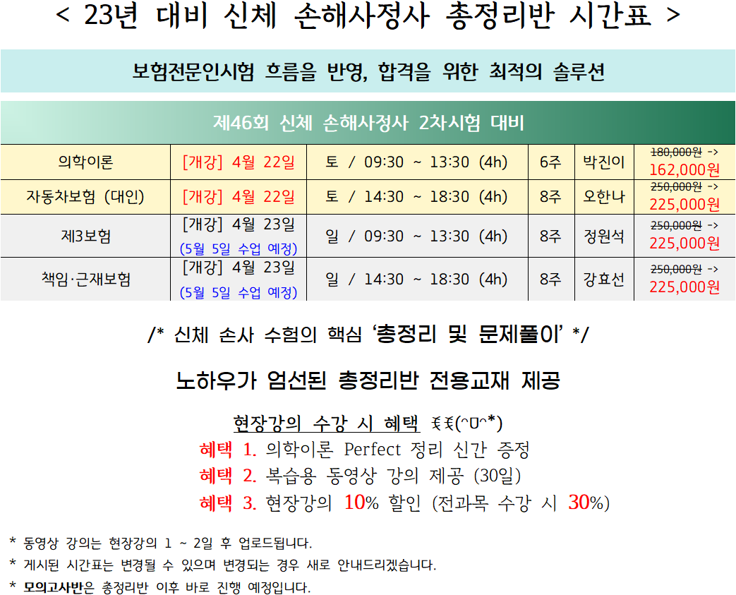 [손사] 23년 대비 2차 총정리반 시간표