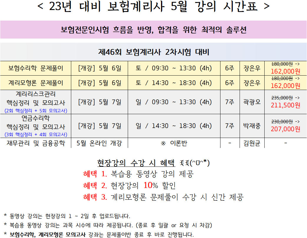 [계리] 23년 5월 현장강의 시간표