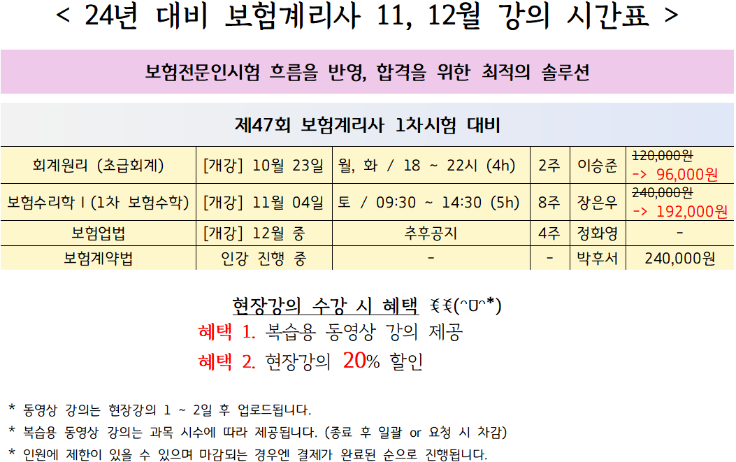[계리] 23년 11월 현장강의 시간표